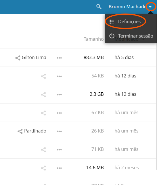 Clique na seta ao lado do nome de seu usuƔrio e clique em "DefiniƧƵes":
