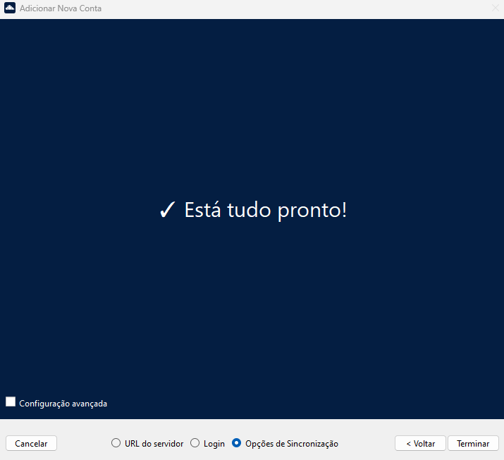 As configurações ocorrendo corretamente, ao inserir a senha o login ocorrerÔ juntamente da sincronização.